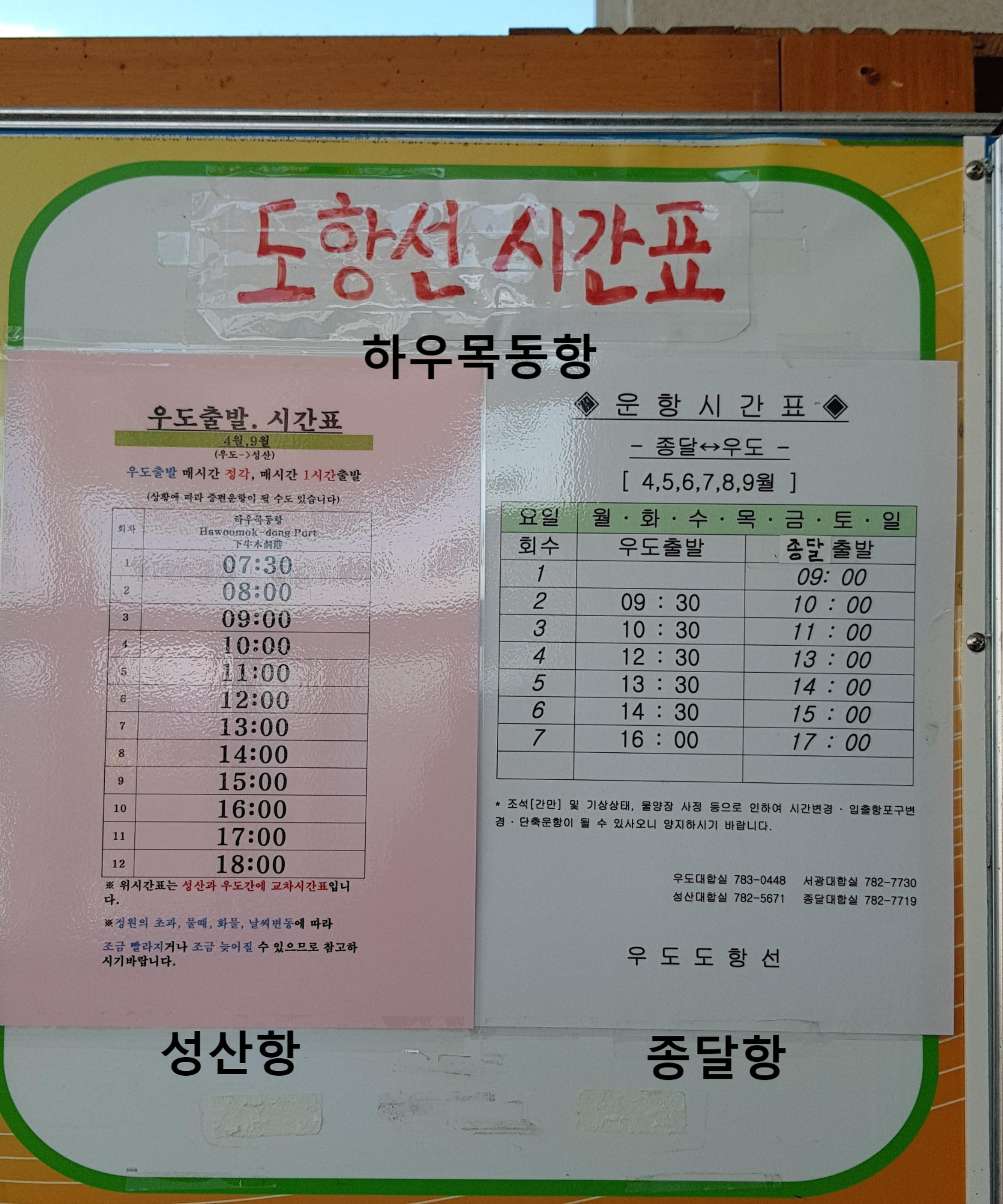 - 하우목동항에서 성산항 / 종달항 출발하는 배시간표입니다.